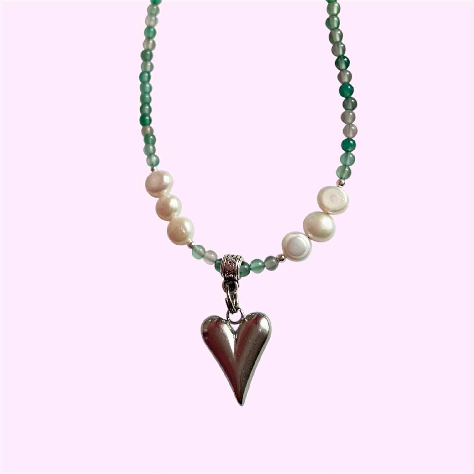 Elegantiškas ir subtilus kaklo papuošalas, pagamintas iš natūralių agato ir upinių perlų karoliukų, papildytas nerūdijančio plieno detalėmis. Ilgis reguliuojamas nuo 39 iki 44 cm, todėl tinka tiek kasdieniam nešiojimui, tiek ypatingoms progoms.