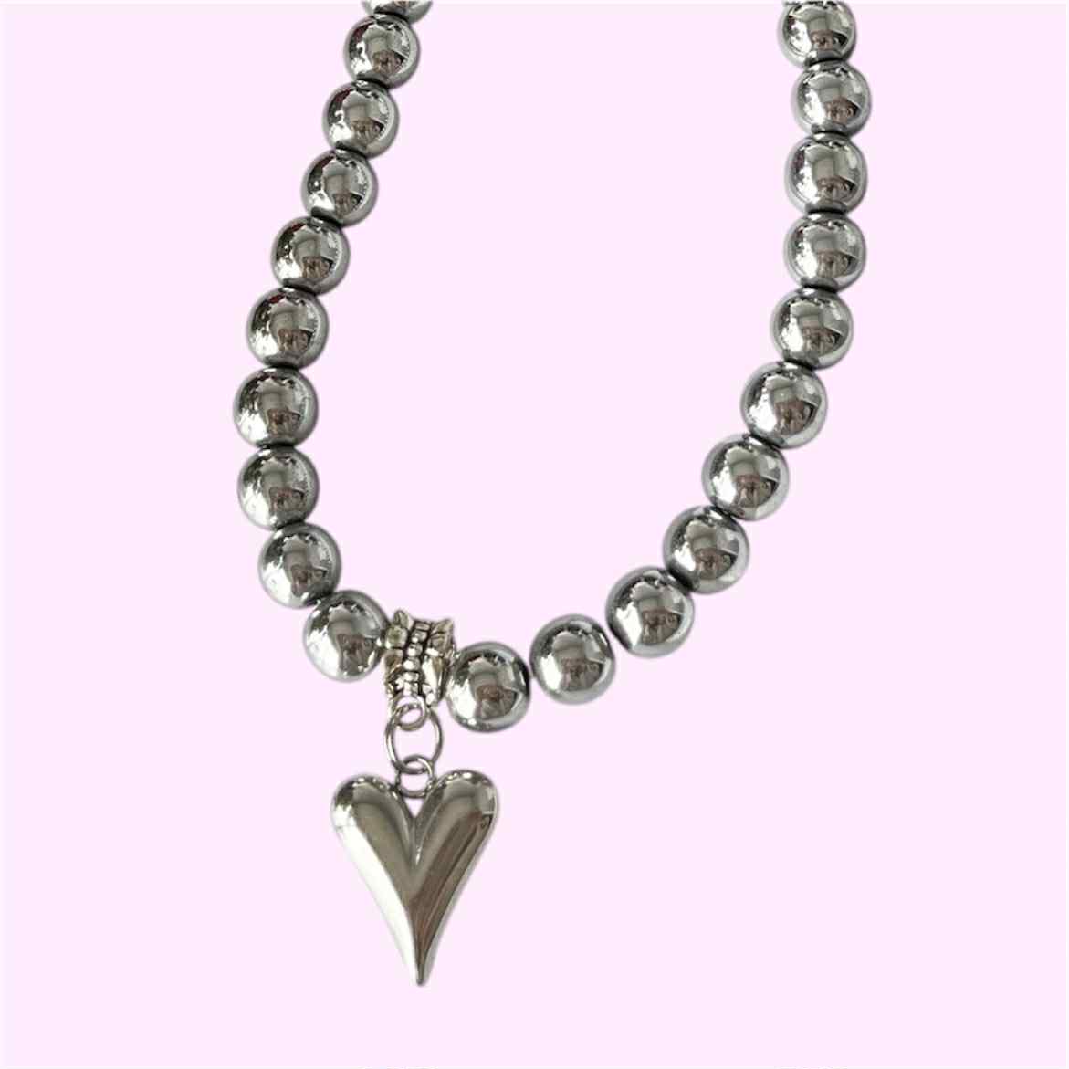 A stylish necklace made of stainless steel and hematite stone. Hematite is a natural stone associated with protection, inner strength, and balance.