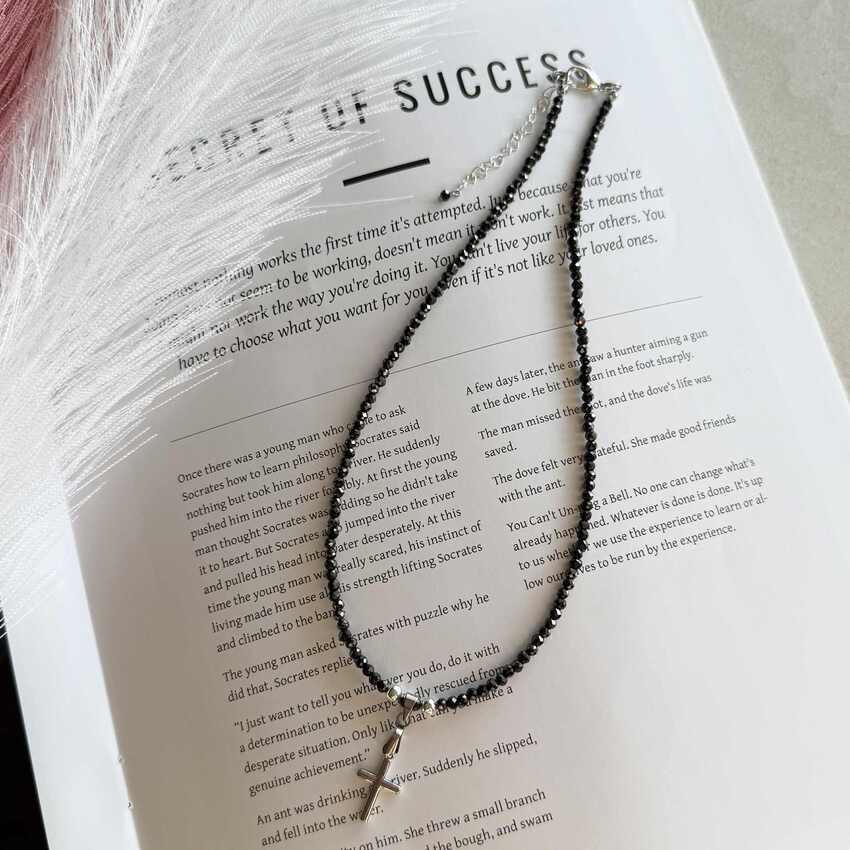 Subtilus ir stilingas rankų darbo vėrinys su kryžiuku – tobulas pasirinkimas tiek kasdienai, tiek ypatingoms progoms. Vėrinys dekoruotas aukštos kokybės blizgiais stiklo kristaliukais, kurie gražiai žaižaruoja šviesoje. Detalės pagamintos iš nerūdijančio plieno. Reguliuojamas ilgis (39–45 cm) leidžia pritaikyti prie įvairaus stiliaus aprangos.